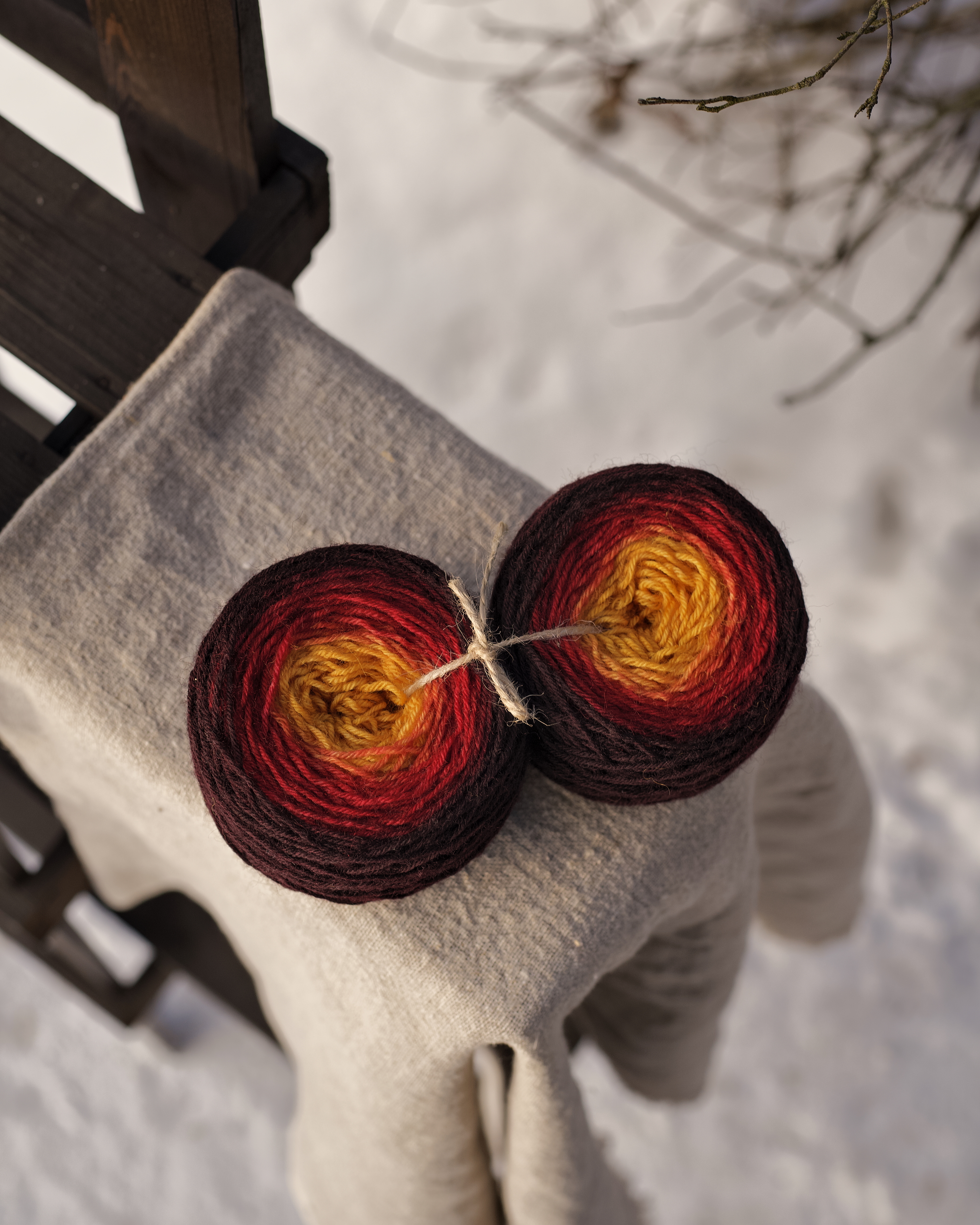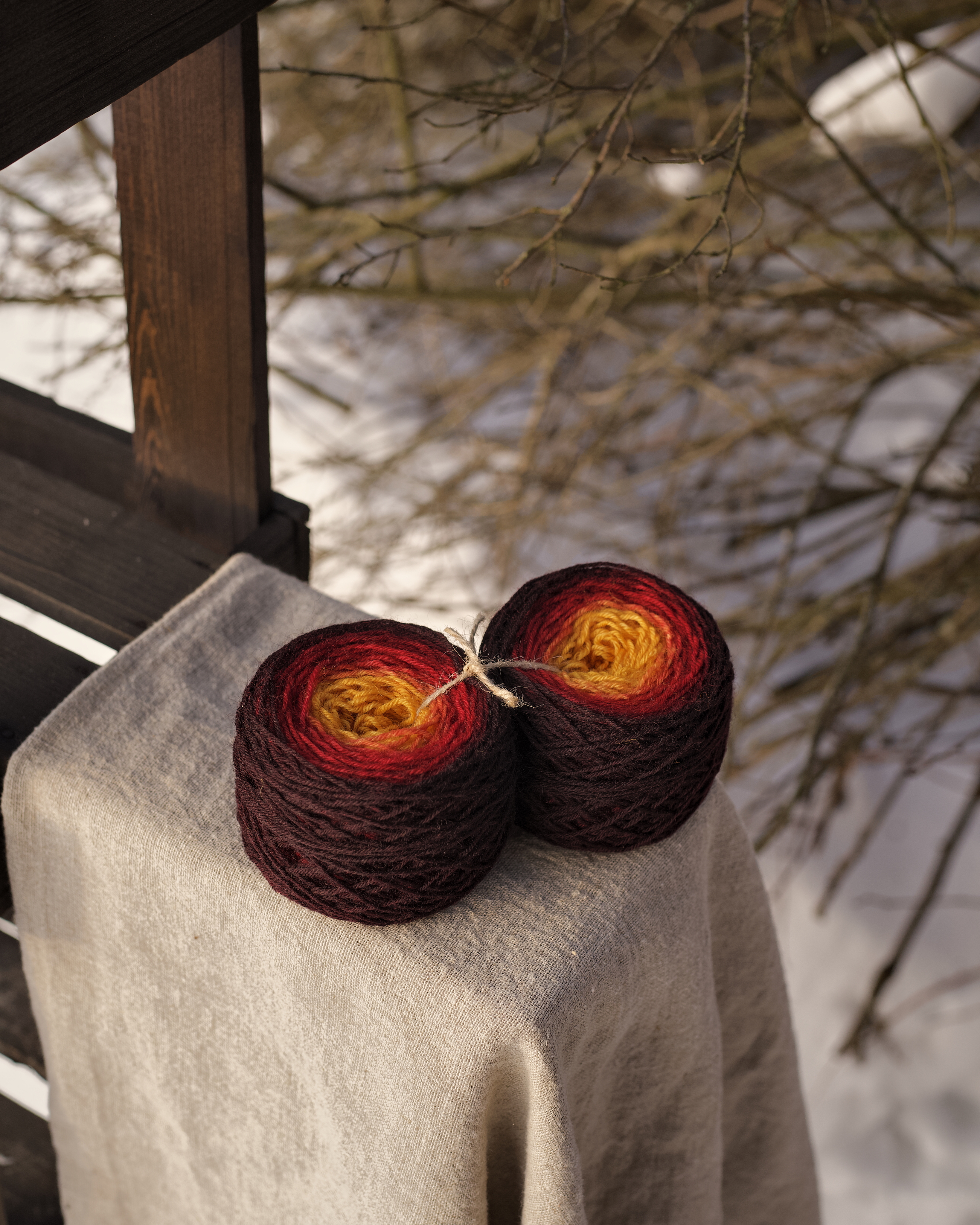 Носочный градиент - два одинаковых моточка с переходами цвета. Набора хватит на пару до 38-39 размера. Пряжа шерстяная, приятная на ощупь.