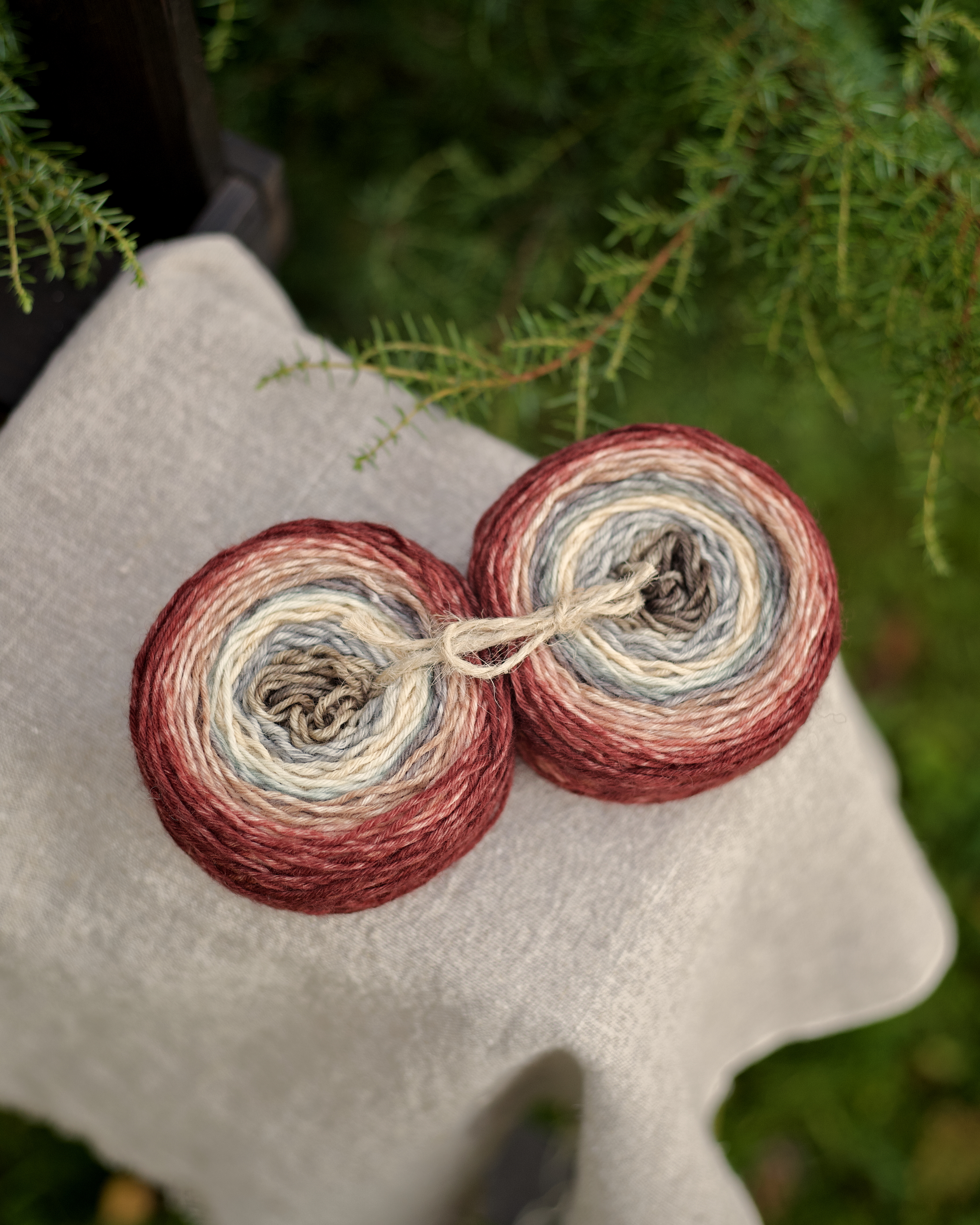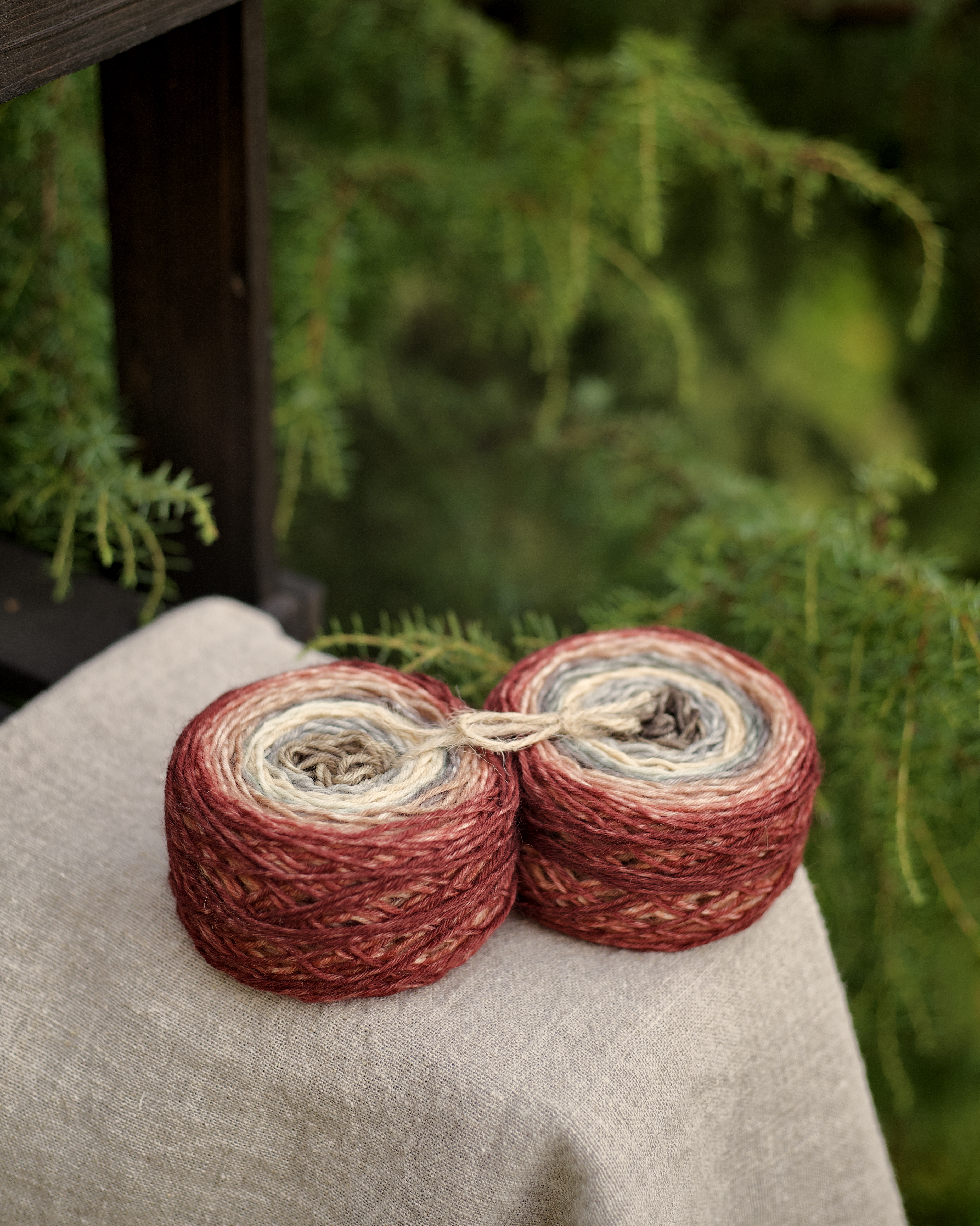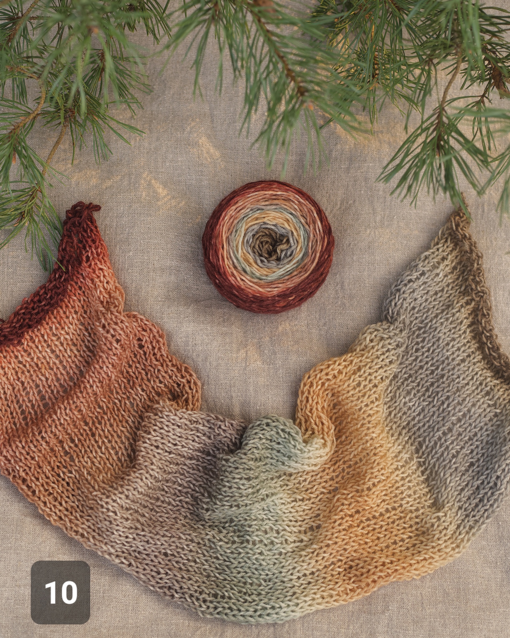 Носочный градиент с несколькими цветовыми переходами. Идеален для быстрых и эффектных носков. Градиент окрашен так, чтобы при вязании переходы были максимально плавными, в том числе и при вязании пятки. Для этого градиента мы рекомендуем вязать паголенок 10-12 см(зависит от плотности).