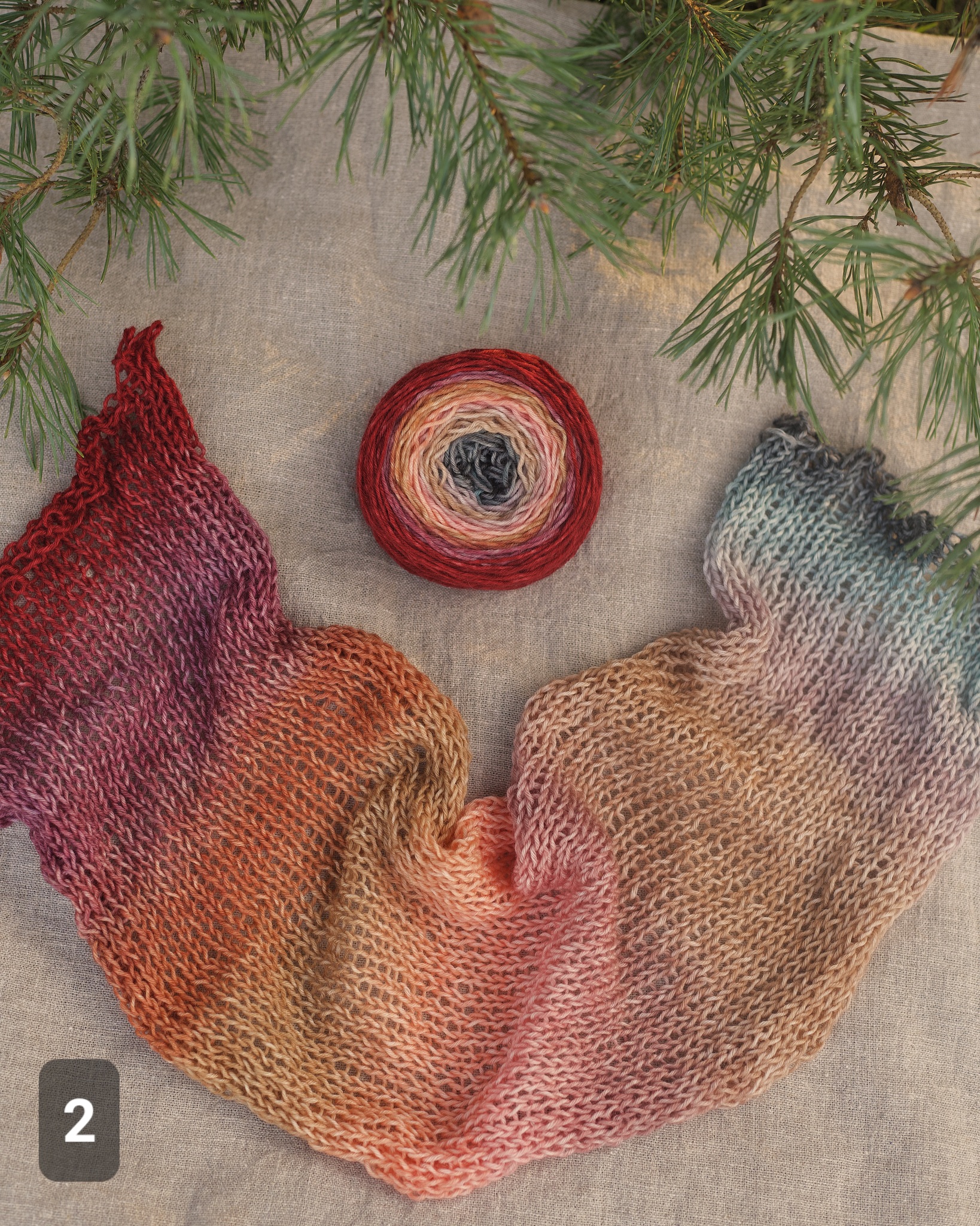 Носочный градиент с несколькими цветовыми переходами. Идеален для быстрых и эффектных носков. Градиент окрашен так, чтобы при вязании переходы были максимально плавными, в том числе и при вязании пятки. Для этого градиента мы рекомендуем вязать паголенок 10-12 см(зависит от плотности).