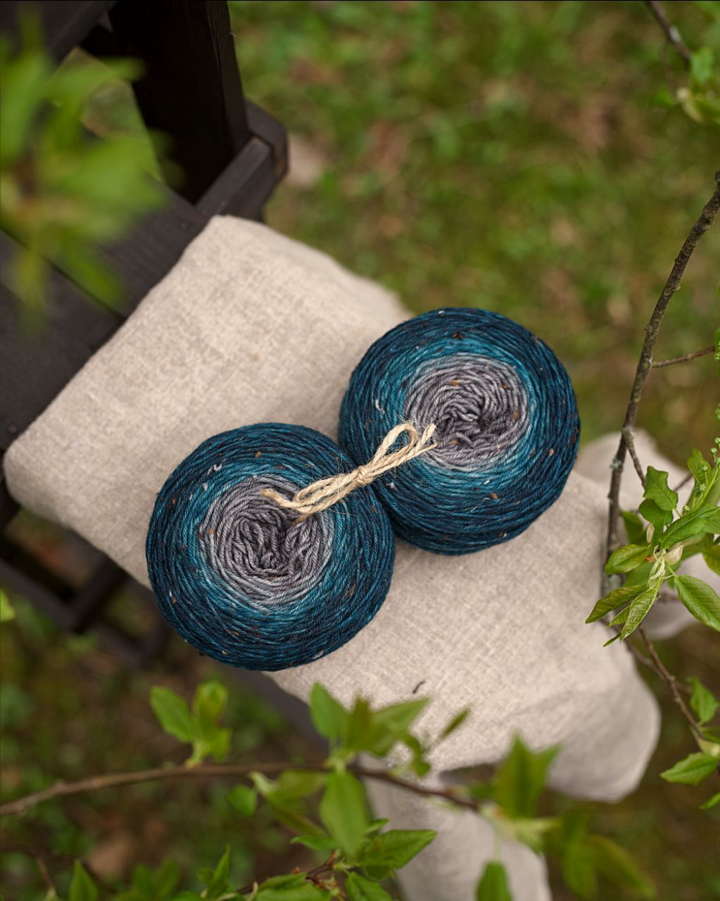 Пряжа ручного окрашивания на основе мериноса с нейлоном и ворсинками твида. Это носочная пряжа - из нее можно связать носки или другие чулочные изделия. Однако подойдет также для вязания шалей, перчаток, свитеров, шапок и бактусов. Одной пасмы хватит на пару взрослых носков или две пары перчаток. На плечевое изделие нужно от трех пасм, на шаль - две пасмы.