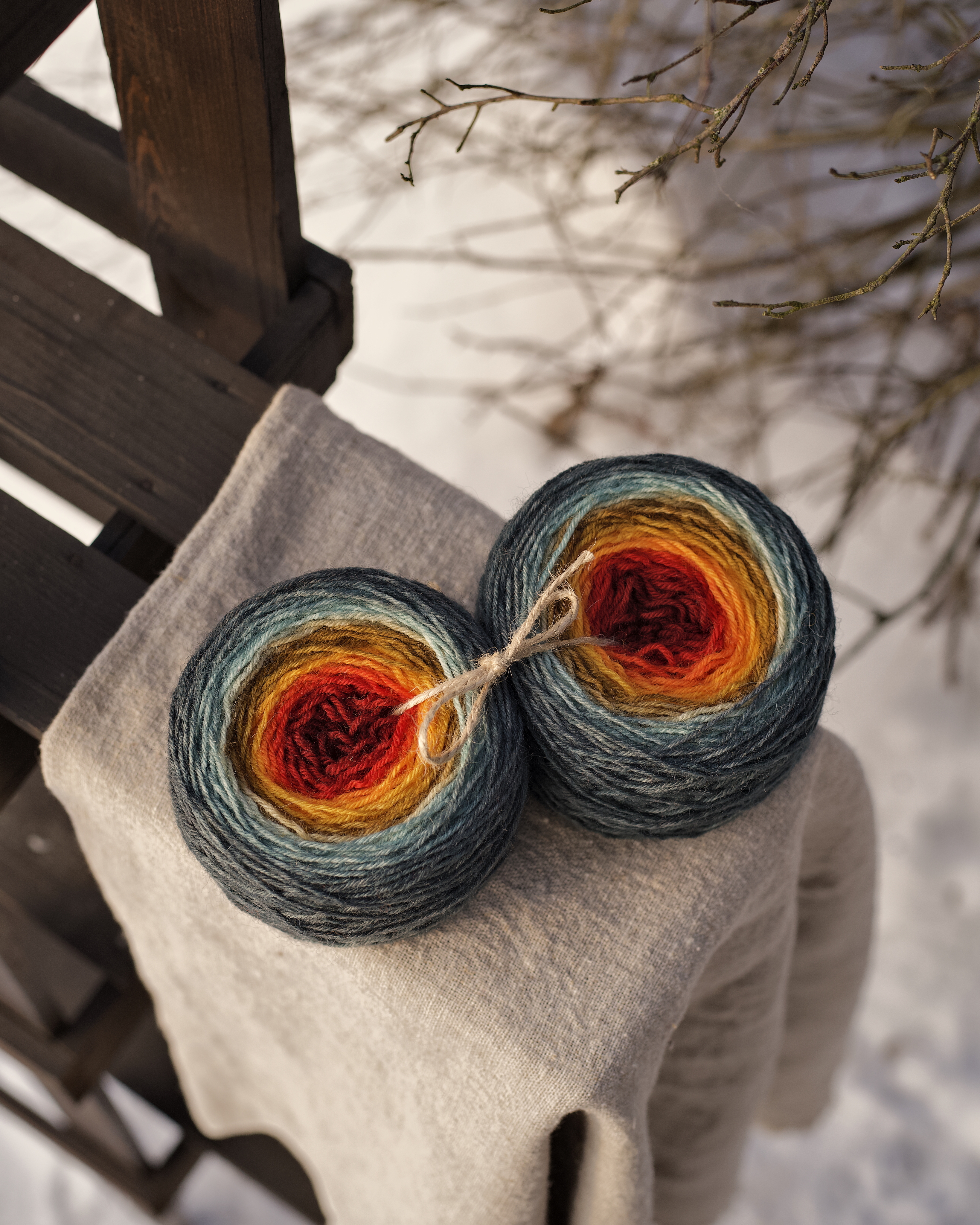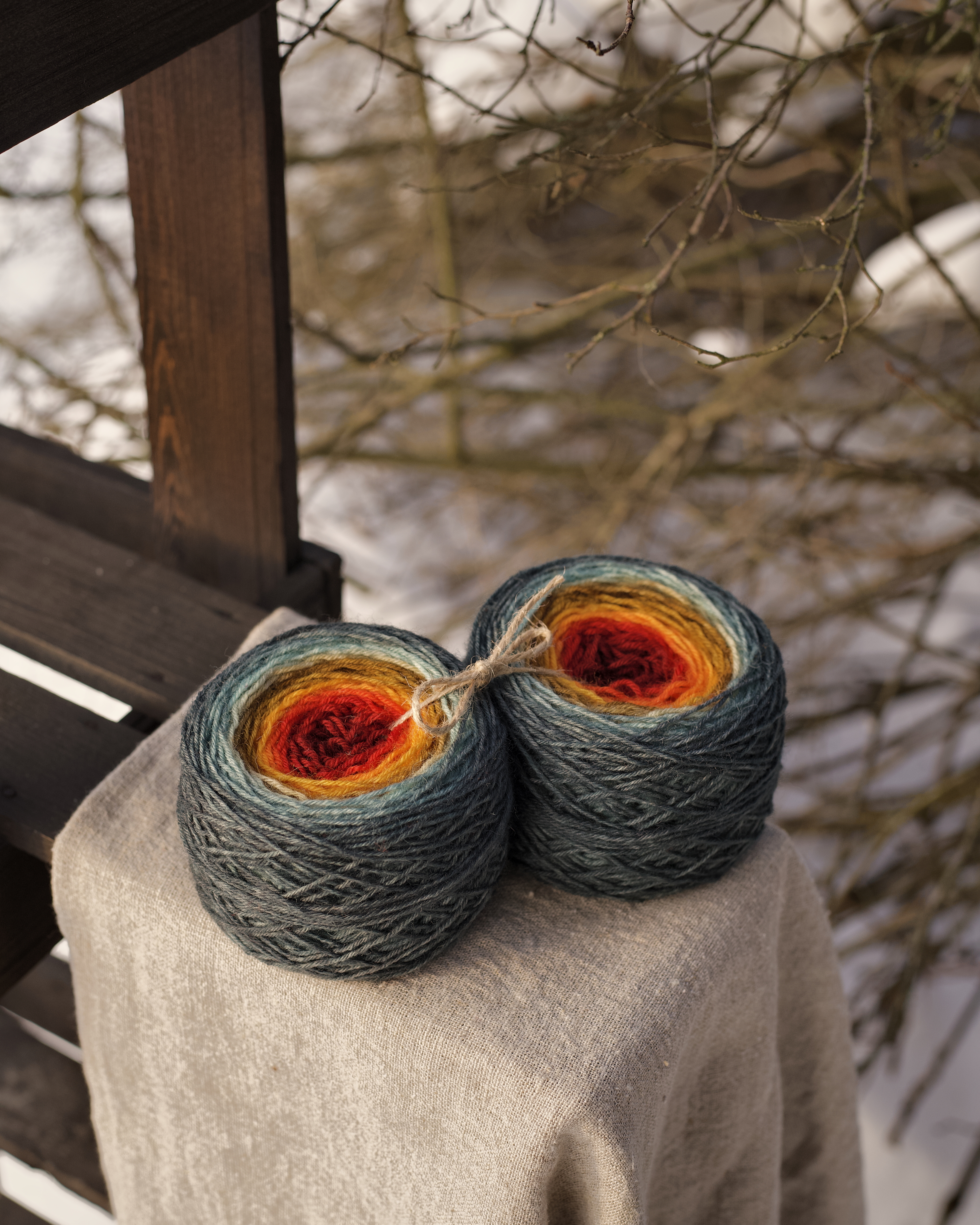 Носочный градиент - два одинаковых моточка с переходами цвета. Набора хватит на пару до 38-39 размера. Пряжа шерстяная, приятная на ощупь.
