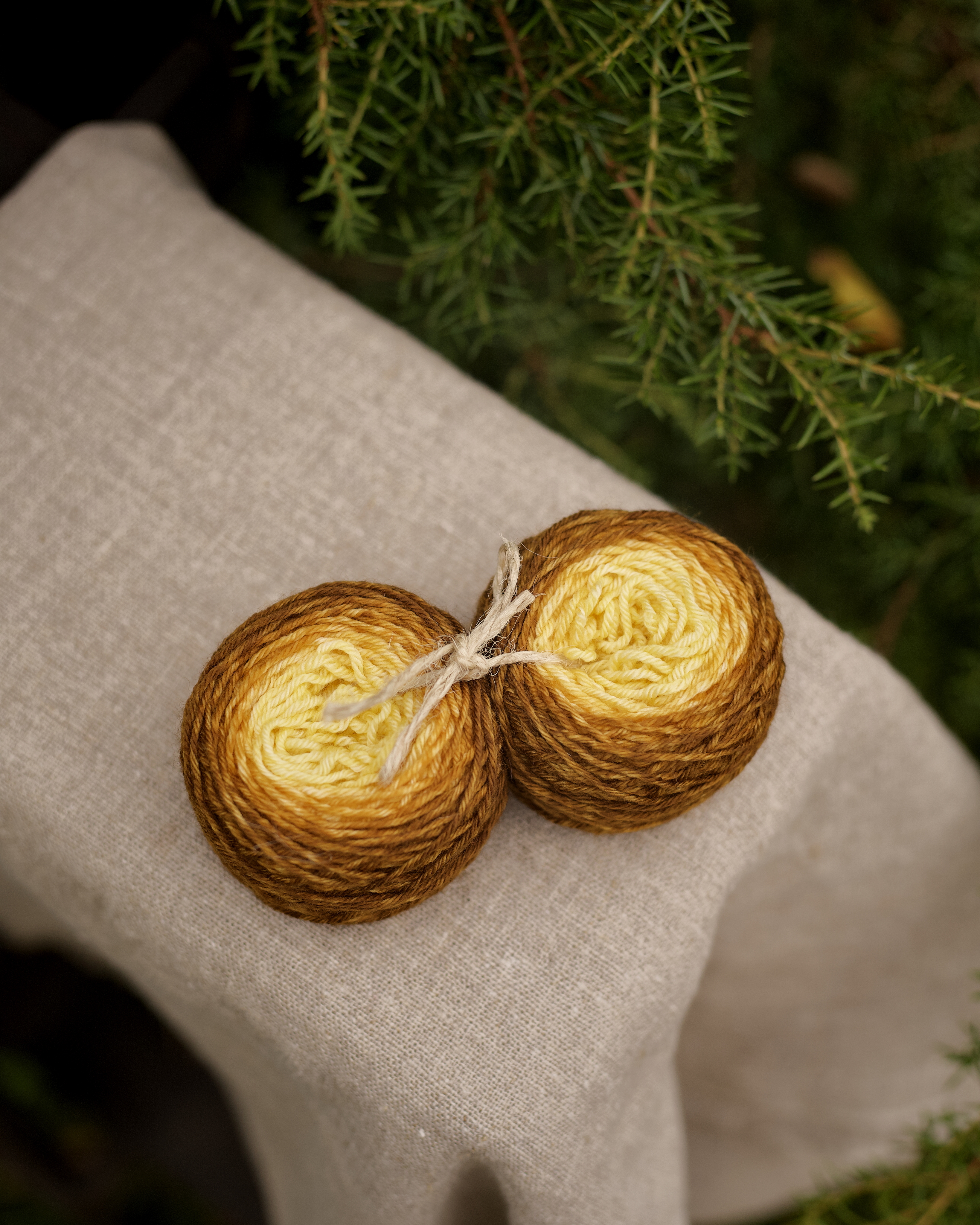 Крохотный мини набор из двух градиентов общим весом 25-26 г. Он подойдёт для вязания маленьких носочков (дети 1-2 года), а ещё будет хорош в жаккарде, например, при вязании взрослых носков или митенок.