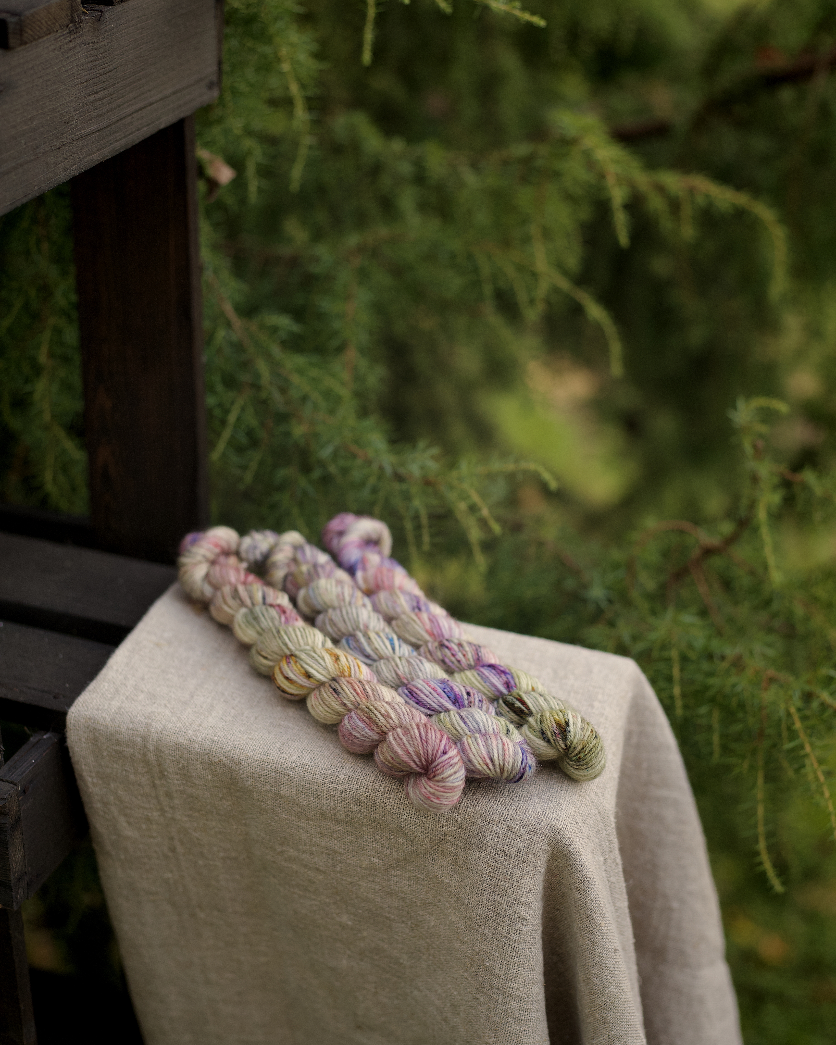 Носочная пряжа с добавлением нейлона. Тактильно мягкая и приятная, подойдёт для вязания абсолютно всего: от носочных изделий до плечевых проектов, шапок и шалей.
