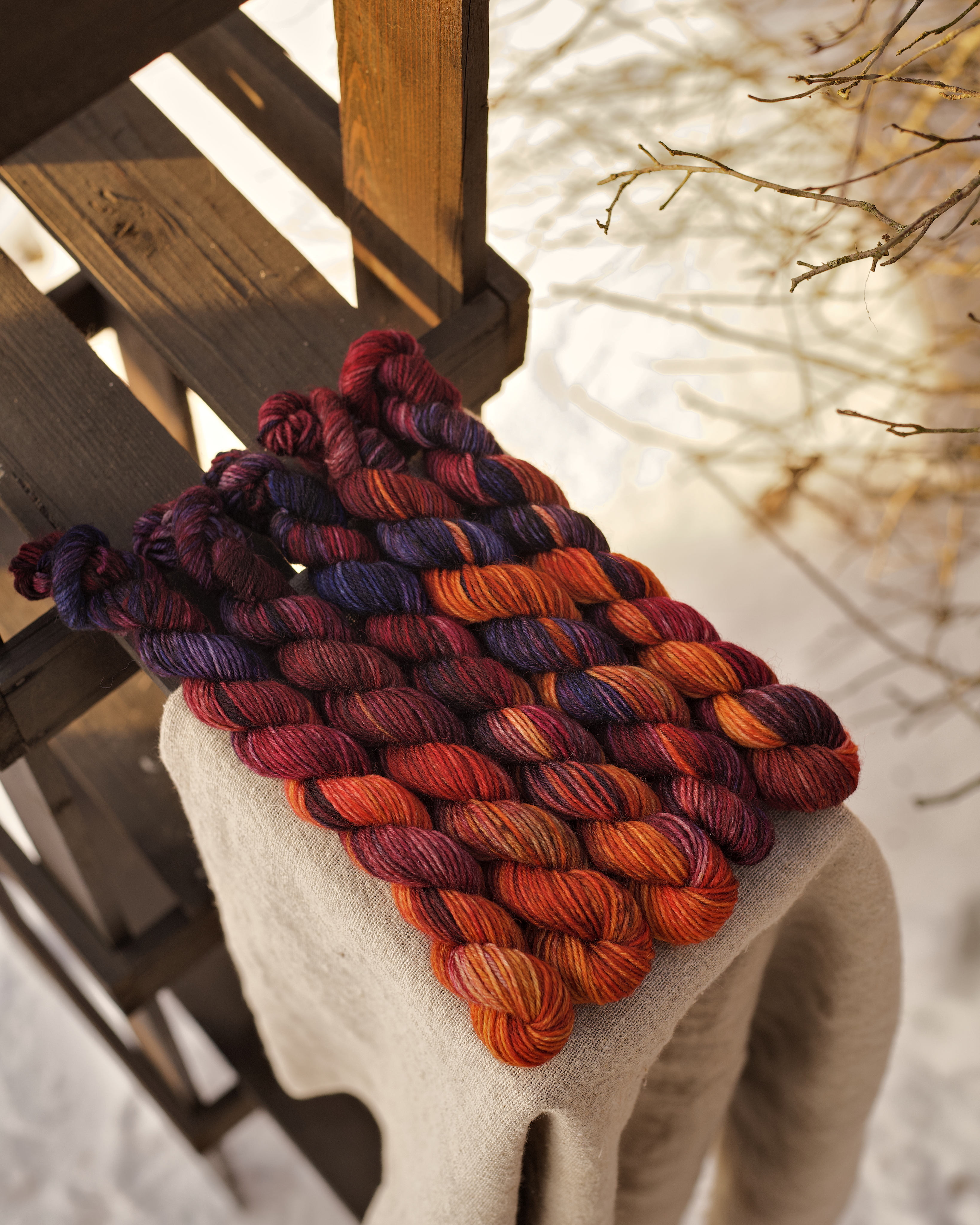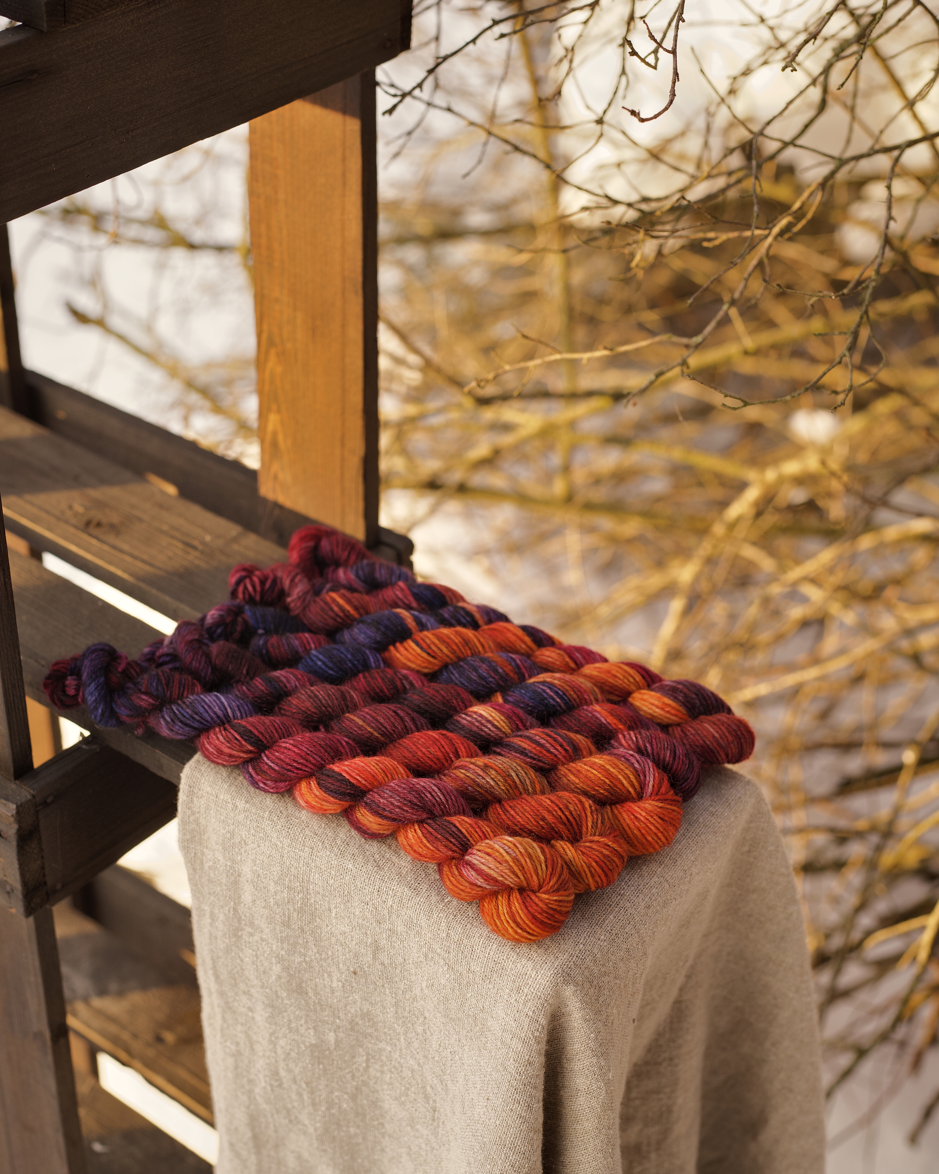 Мини пасмы из классической носочной пряжи с добавлением полиамида. Основа - немецкая. Несмотря на то,что это шерсть, тактильно полотно приятное, а благодаря полиамиду в составе изделия прлучаются износостойкие. Отлично подходит для вязания носков, перчаток, шалей.