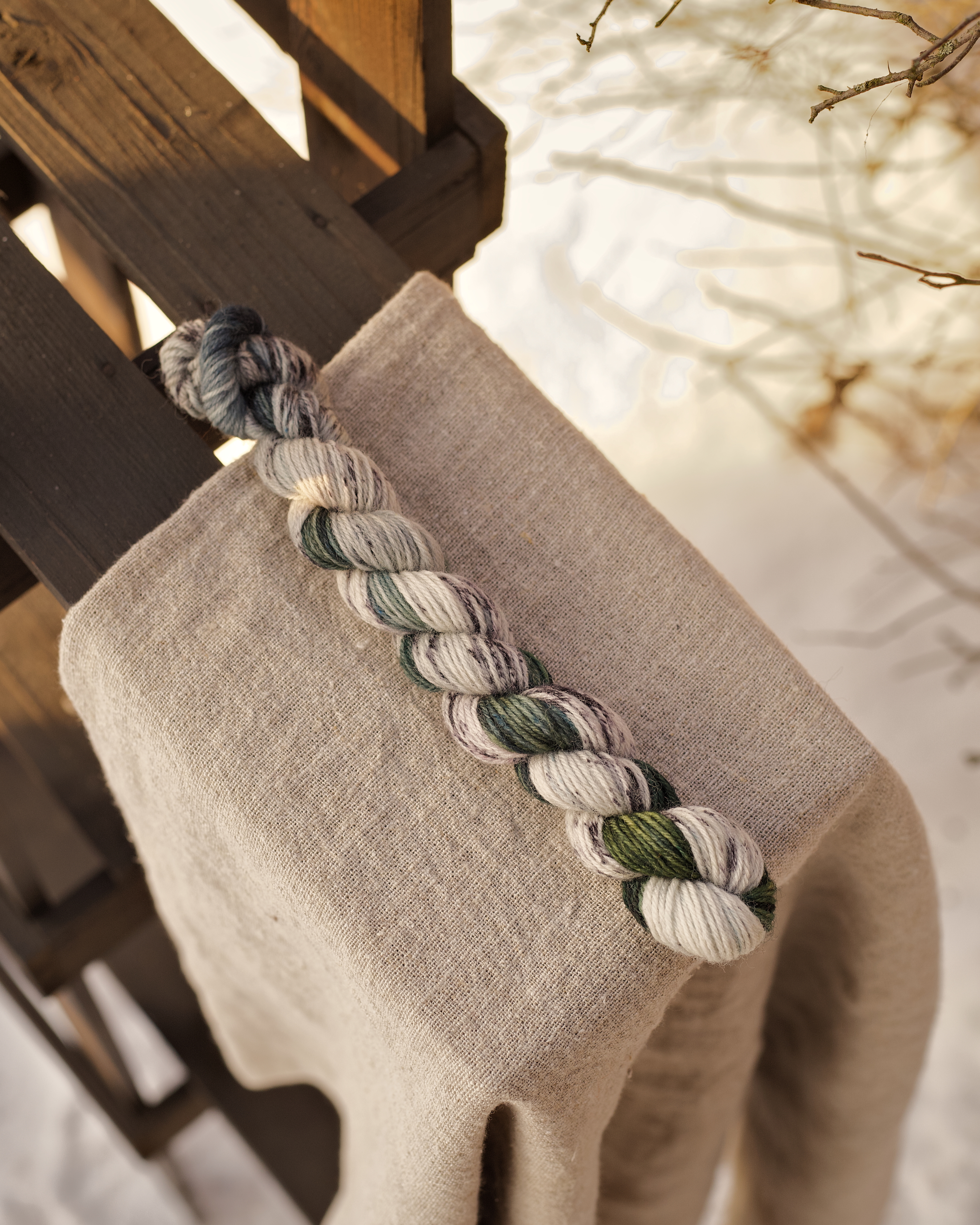Мини пасмы из классической носочной пряжи с добавлением полиамида. Основа - немецкая. Несмотря на то,что это шерсть, тактильно полотно приятное, а благодаря полиамиду в составе изделия прлучаются износостойкие. Отлично подходит для вязания носков, перчаток, шалей.