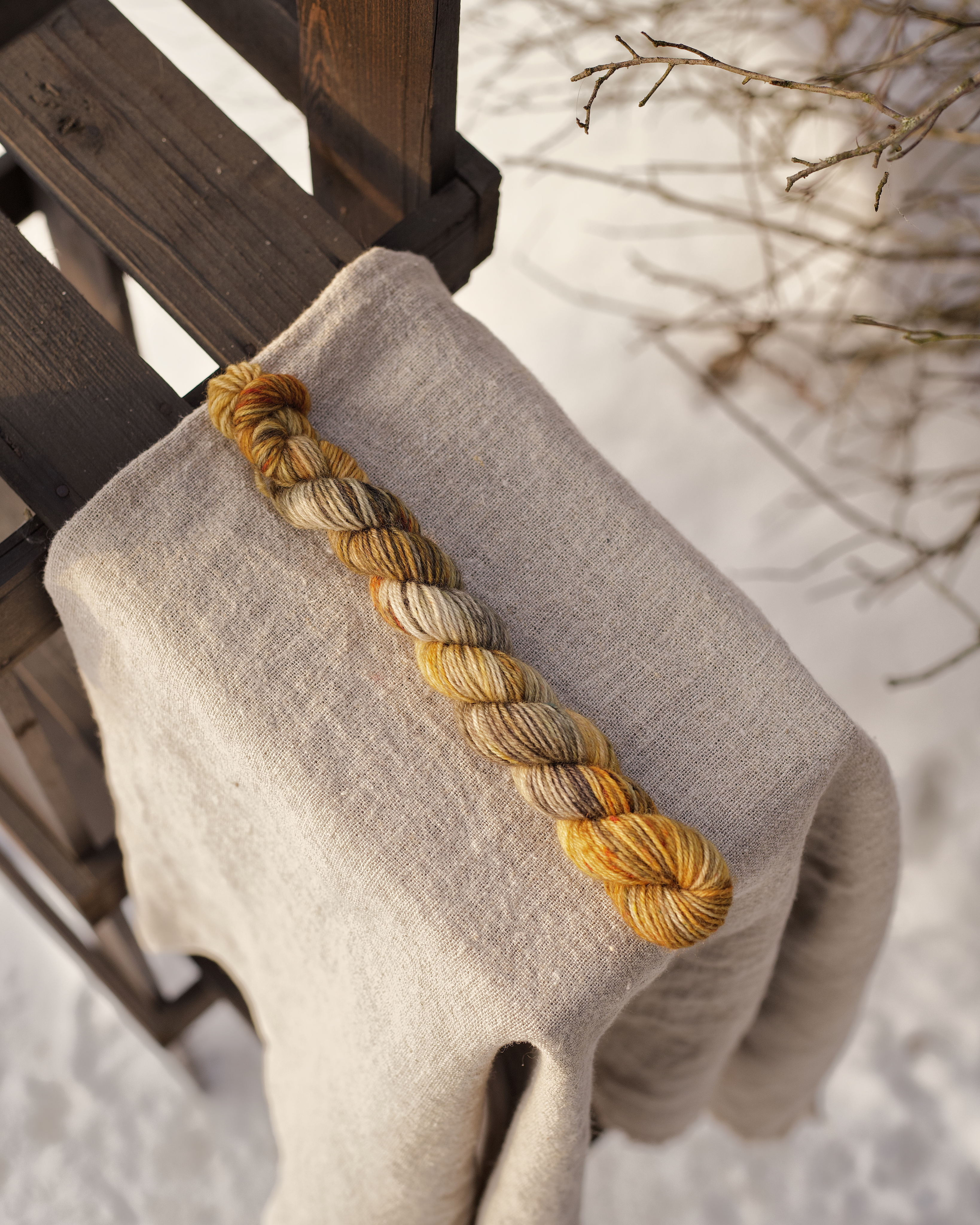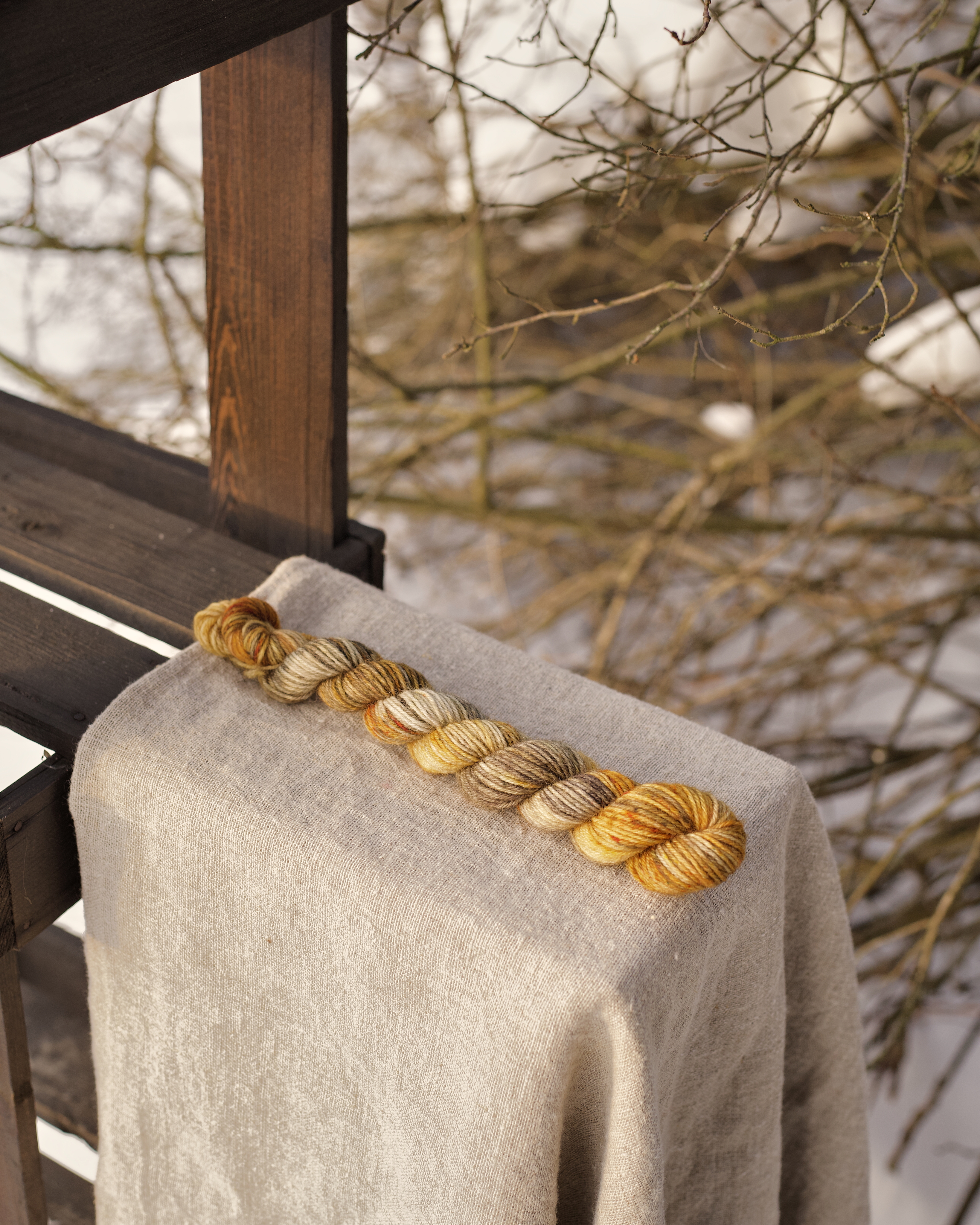 Мини пасмы из классической носочной пряжи с добавлением полиамида. Основа - немецкая. Несмотря на то,что это шерсть, тактильно полотно приятное, а благодаря полиамиду в составе изделия прлучаются износостойкие. Отлично подходит для вязания носков, перчаток, шалей.