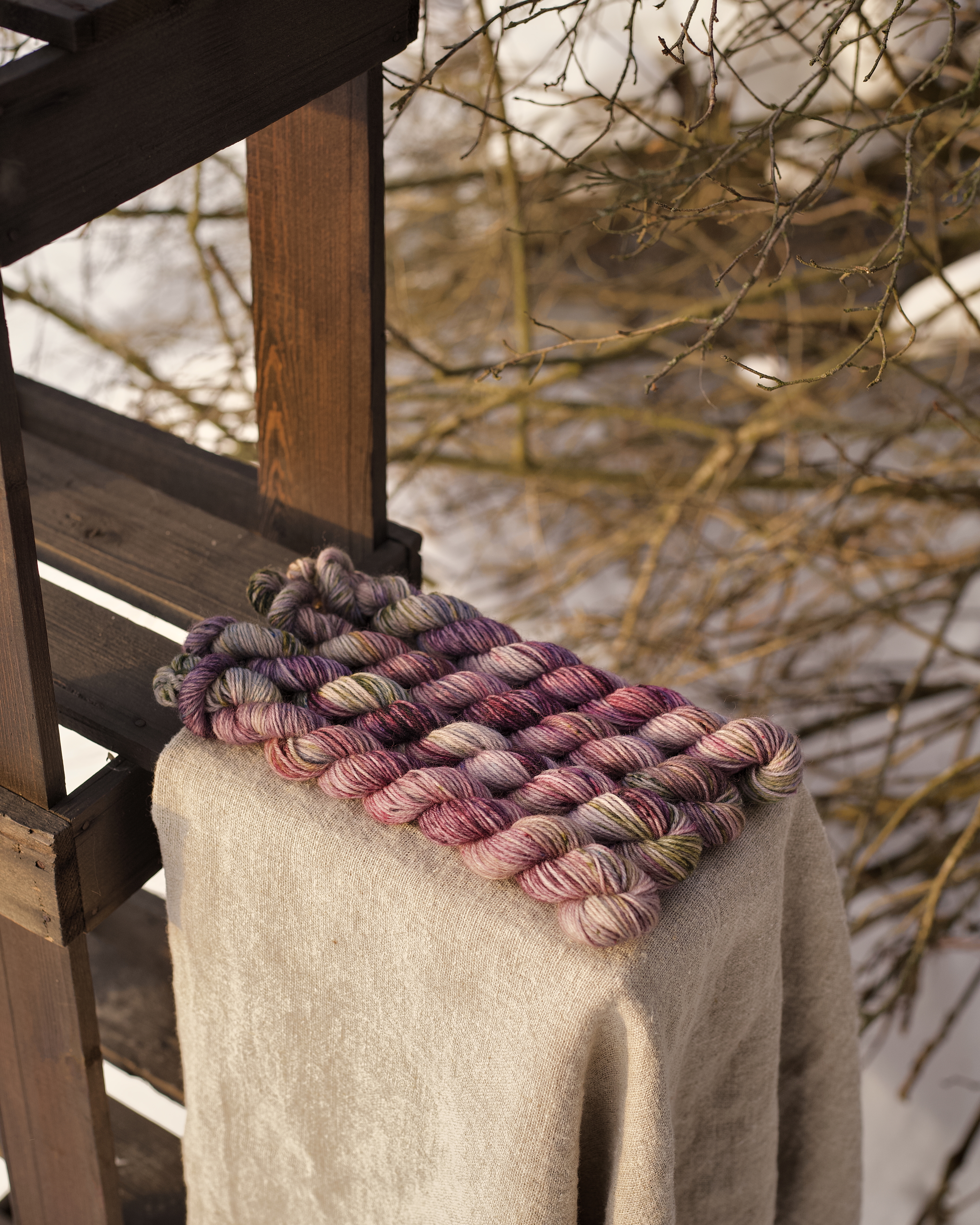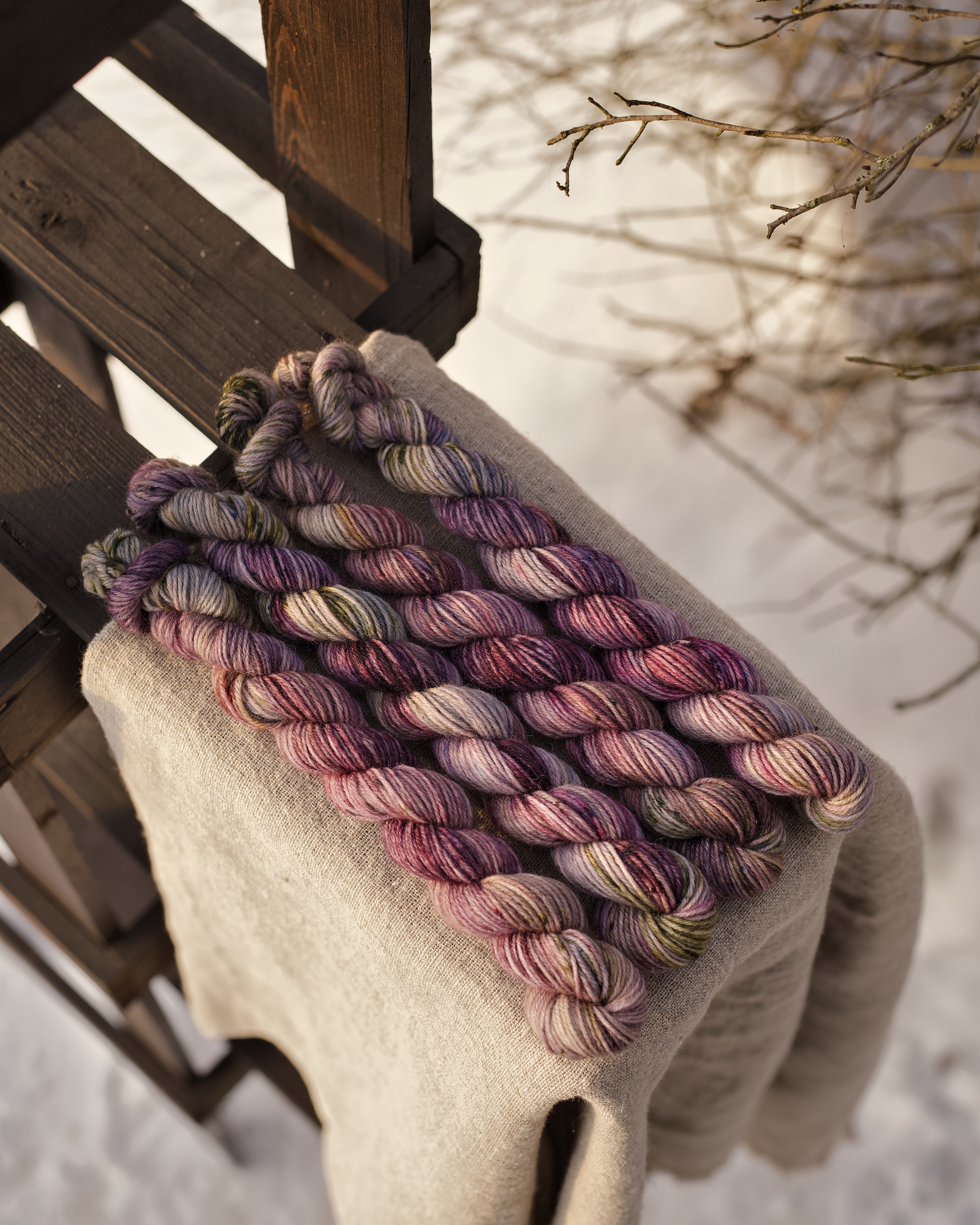 Мини пасмы из классической носочной пряжи с добавлением полиамида. Основа - немецкая. Несмотря на то,что это шерсть, тактильно полотно приятное, а благодаря полиамиду в составе изделия прлучаются износостойкие. Отлично подходит для вязания носков, перчаток, шалей.