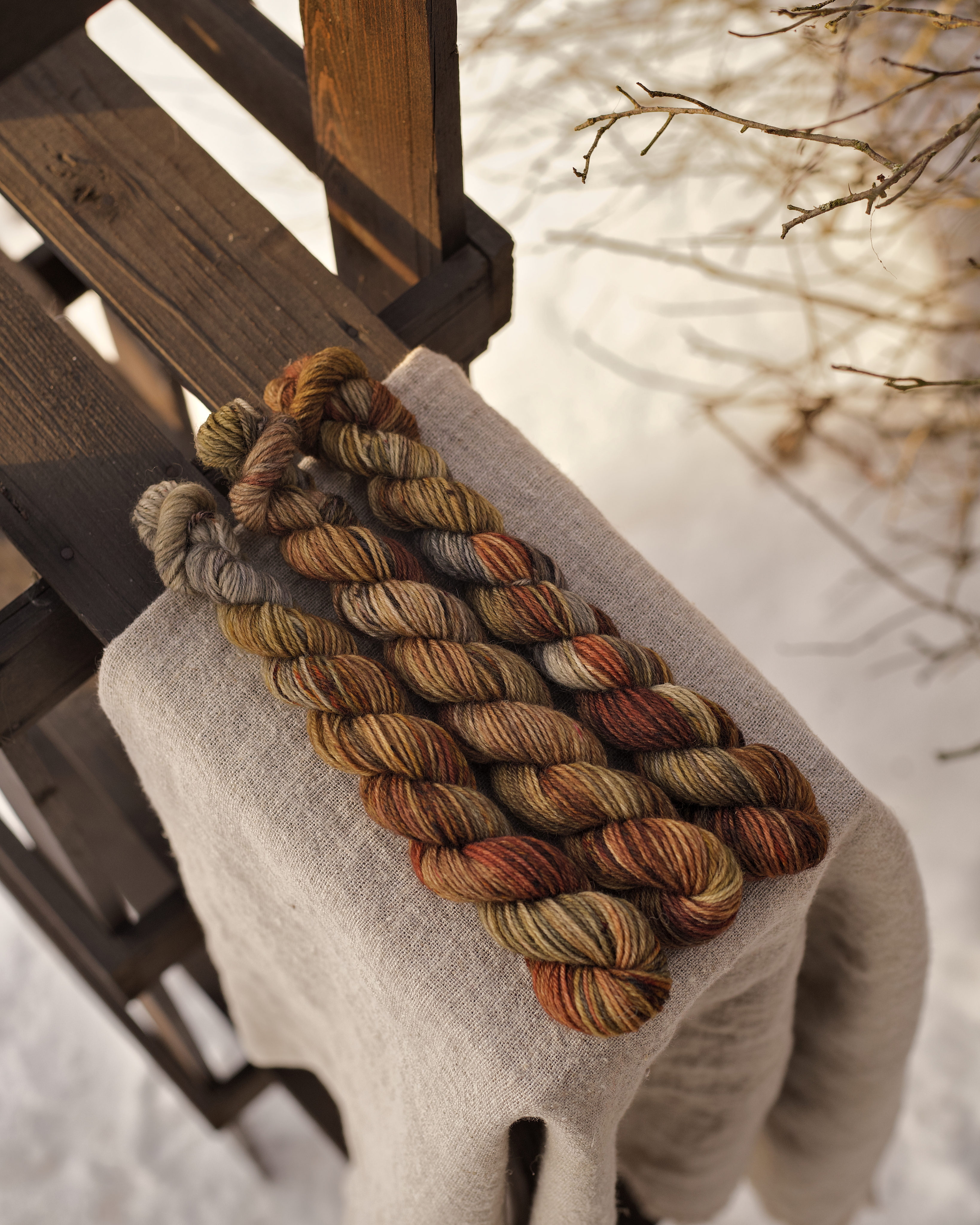 Мини пасмы из классической носочной пряжи с добавлением полиамида. Основа - немецкая. Несмотря на то,что это шерсть, тактильно полотно приятное, а благодаря полиамиду в составе изделия прлучаются износостойкие. Отлично подходит для вязания носков, перчаток, шалей.