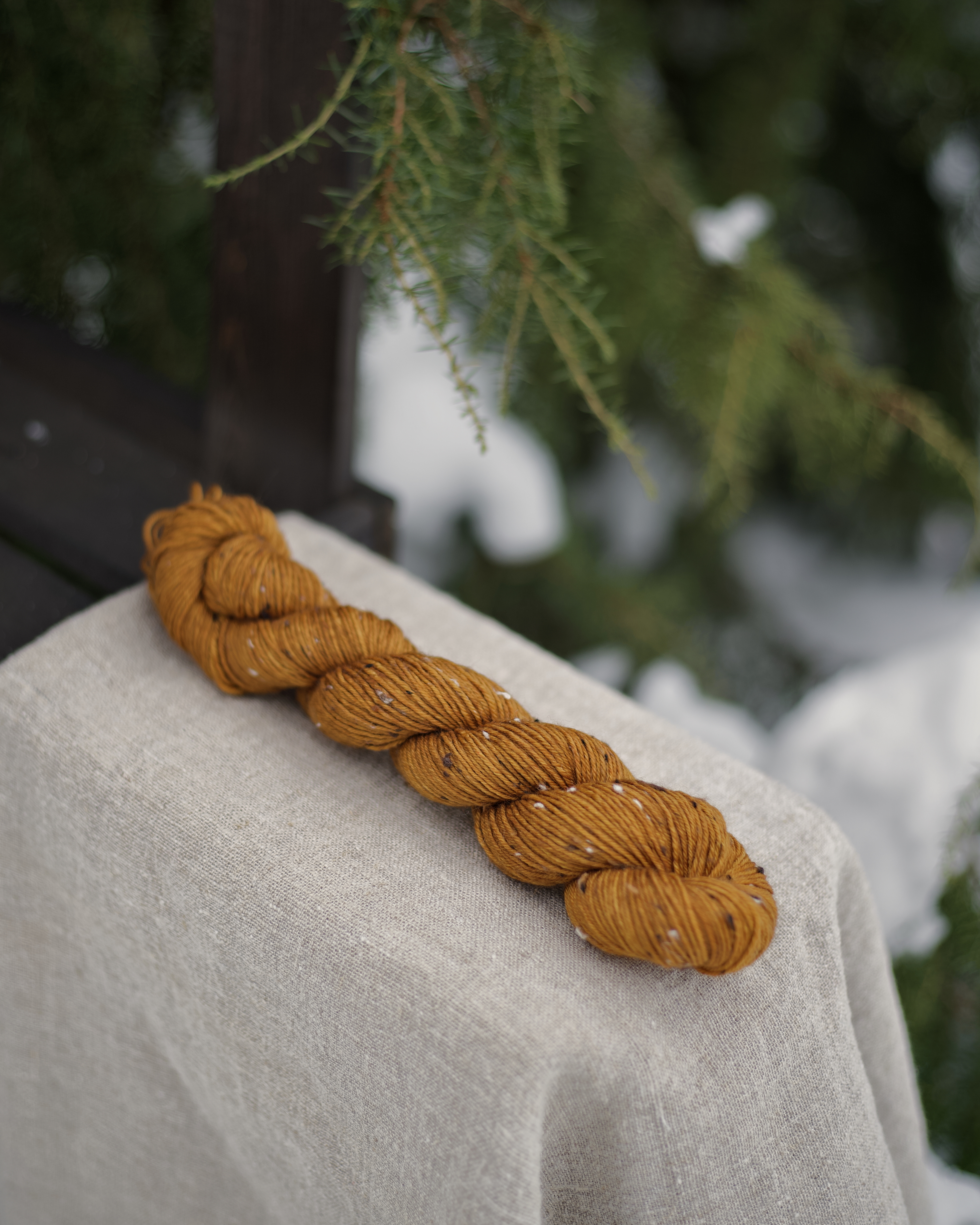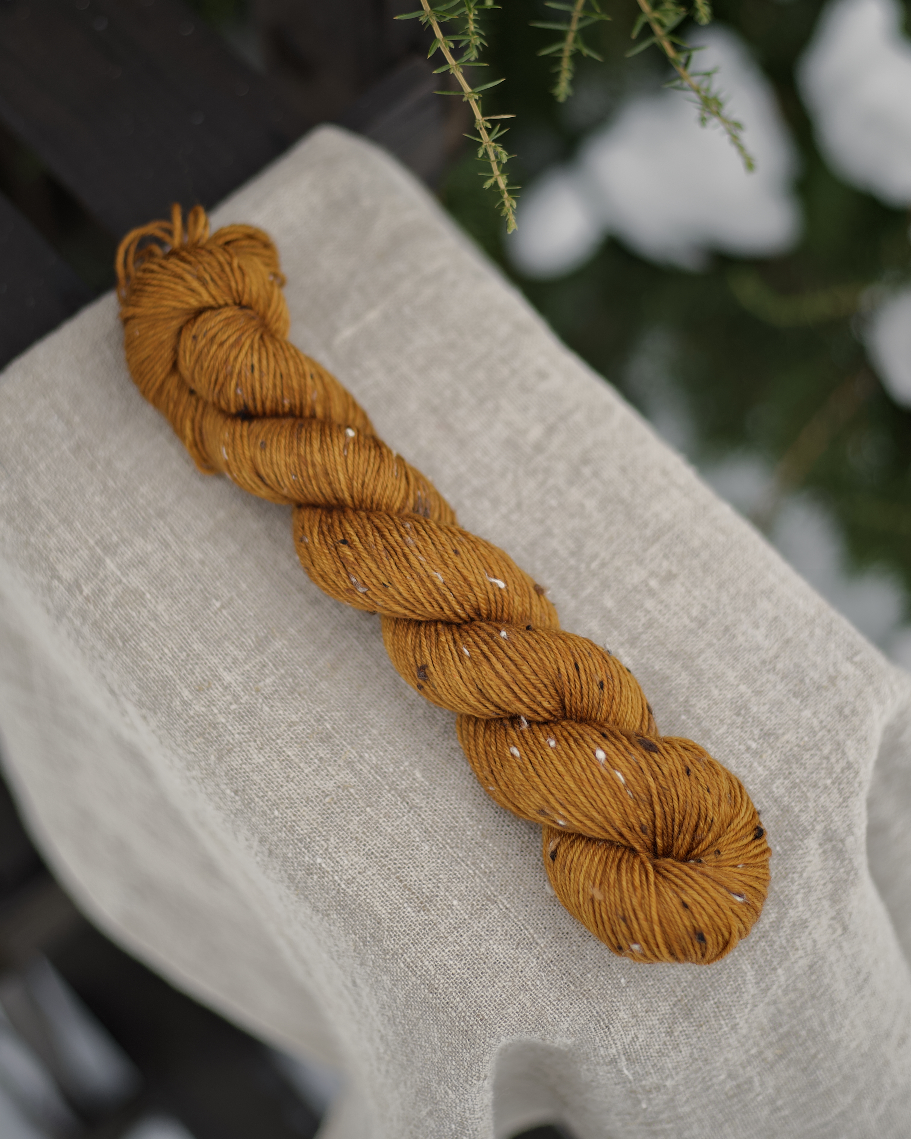 Пряжа ручного окрашивания на основе мериноса с нейлоном и ворсинками твида. Это носочная пряжа - из нее можно связать носки или другие чулочные изделия. Однако подойдет также для вязания шалей, перчаток, свитеров, шапок и бактусов. Одной пасмы 50 г хватит на пару детских носков или пару перчаток.