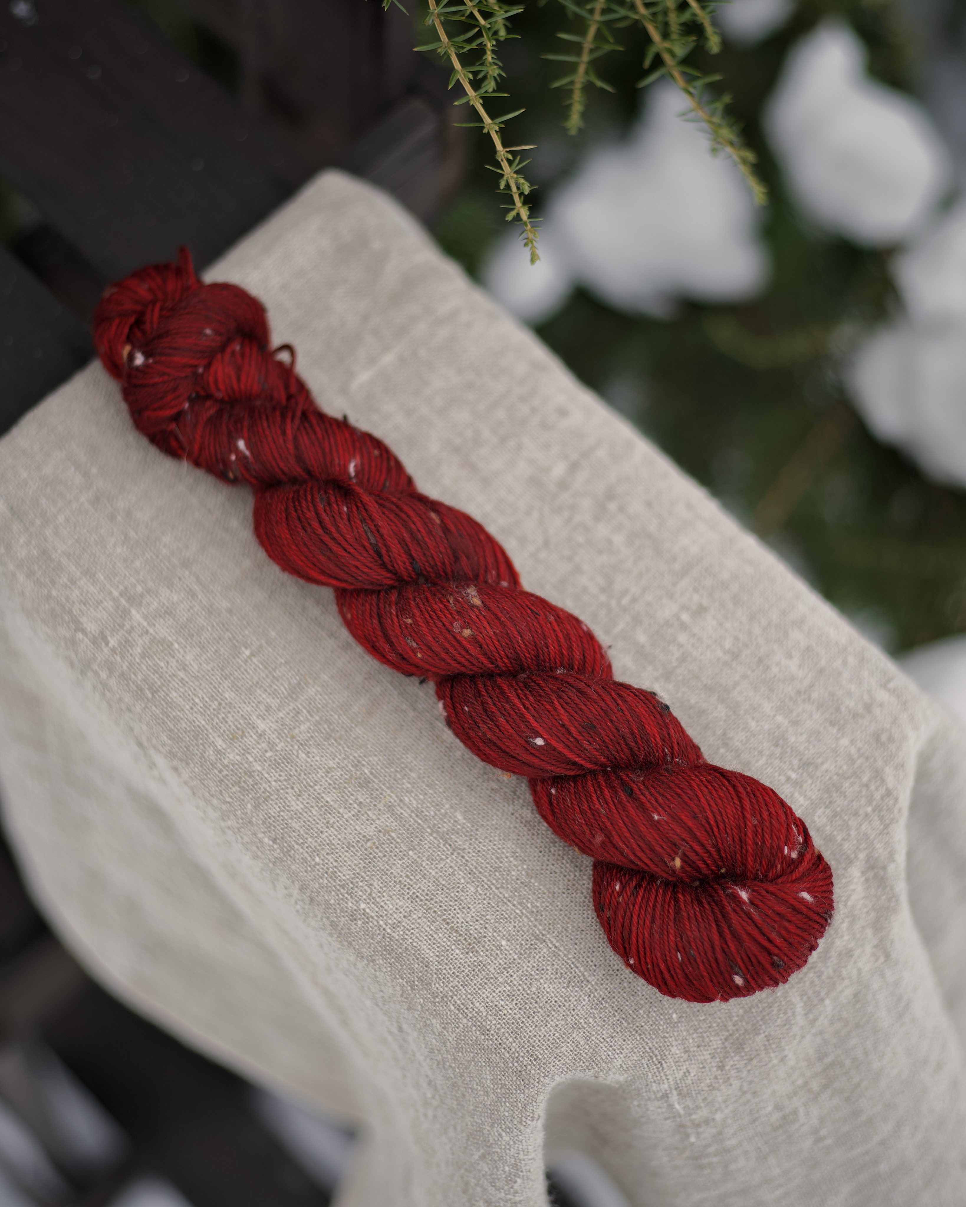 Пряжа ручного окрашивания на основе мериноса с нейлоном и ворсинками твида. Это носочная пряжа - из нее можно связать носки или другие чулочные изделия. Однако подойдет также для вязания шалей, перчаток, свитеров, шапок и бактусов. Одной пасмы 50 г хватит на пару детских носков или пару перчаток.