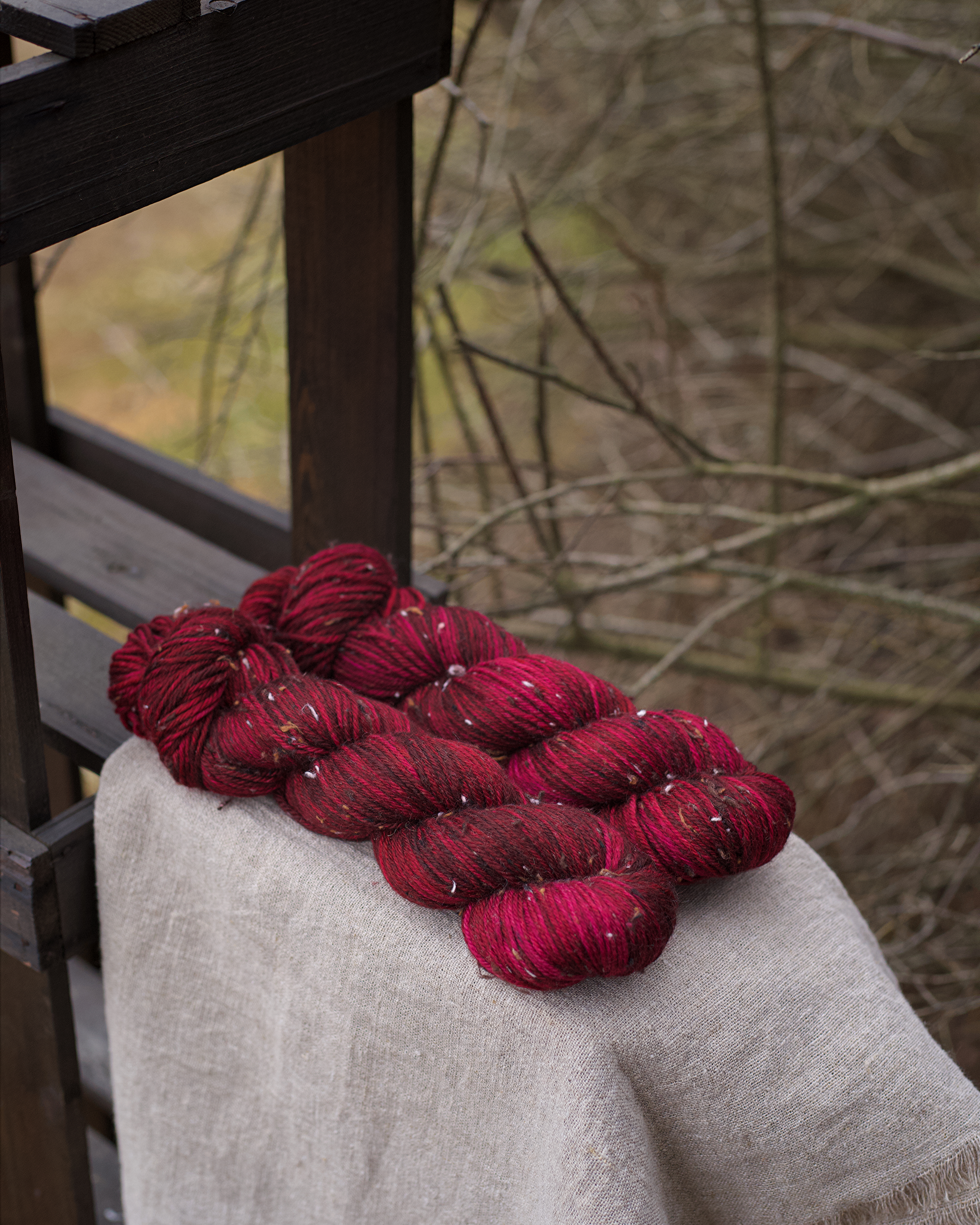 Пряжа ручного окрашивания на основе мериноса с нейлоном и ворсинками твида. Это носочная пряжа - из нее можно связать носки или другие чулочные изделия. Однако подойдет также для вязания шалей, перчаток, свитеров, шапок и бактусов. Одной пасмы хватит на пару носков до 38-39 размера или пару перчаток. На плечевое изделие нужно от пяти пасм, на шарф - две-три пасмы.