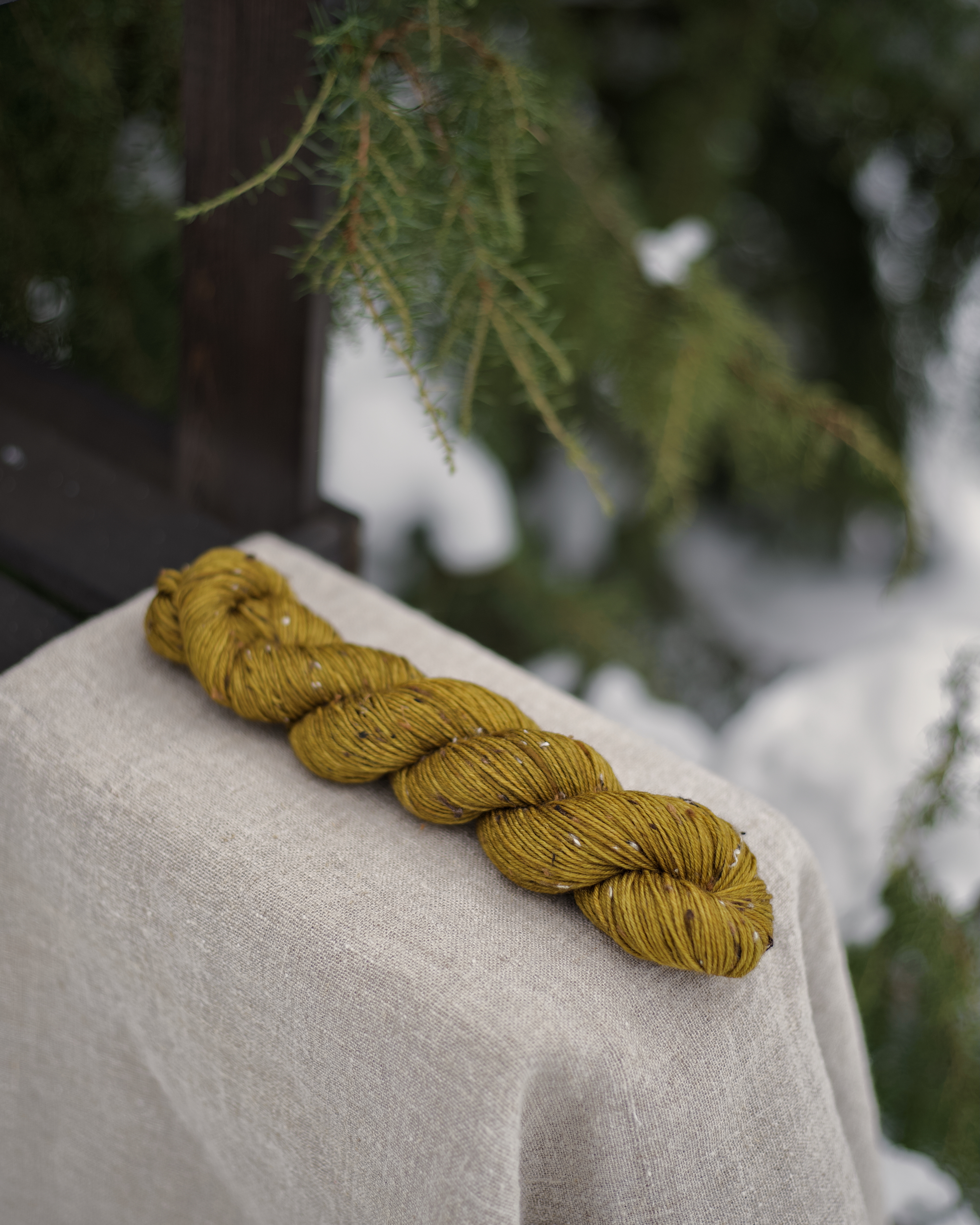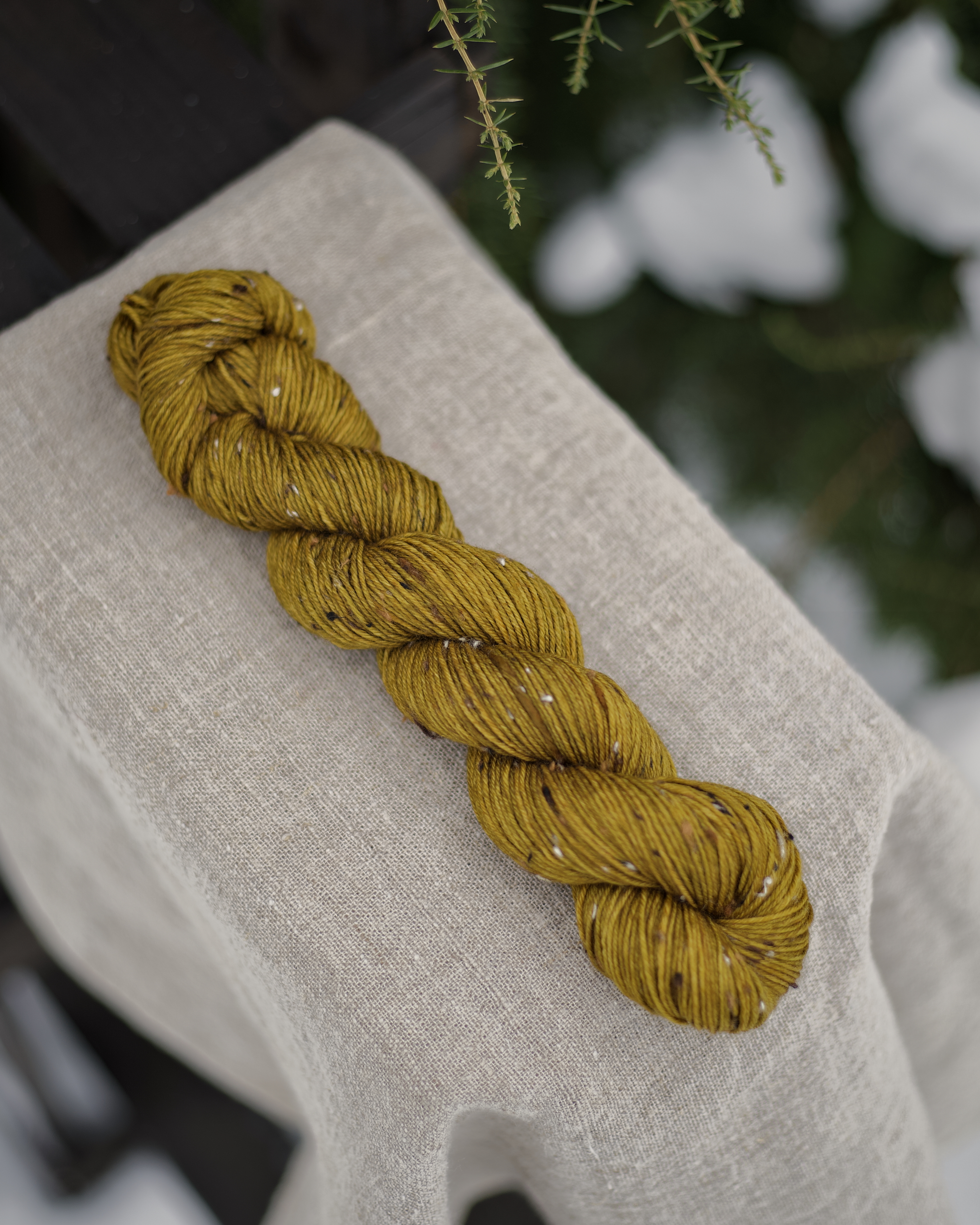 Пряжа ручного окрашивания на основе мериноса с нейлоном и ворсинками твида. Это носочная пряжа - из нее можно связать носки или другие чулочные изделия. Однако подойдет также для вязания шалей, перчаток, свитеров, шапок и бактусов. Одной пасмы 50 г хватит на пару детских носков или пару перчаток.