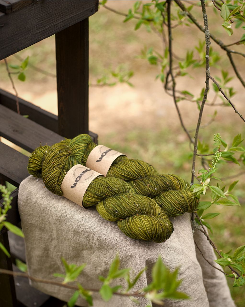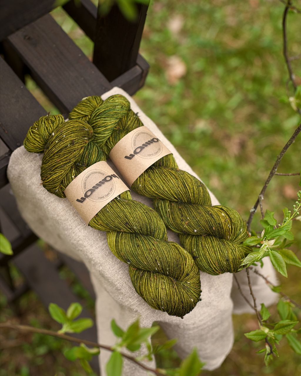 Пряжа ручного окрашивания на основе мериноса с нейлоном и ворсинками твида. Это носочная пряжа - из нее можно связать носки или другие чулочные изделия. Однако подойдет также для вязания шалей, перчаток, свитеров, шапок и бактусов. Одной пасмы хватит на пару взрослых носков или две пары перчаток. На плечевое изделие нужно от трех пасм, на шаль - две пасмы.