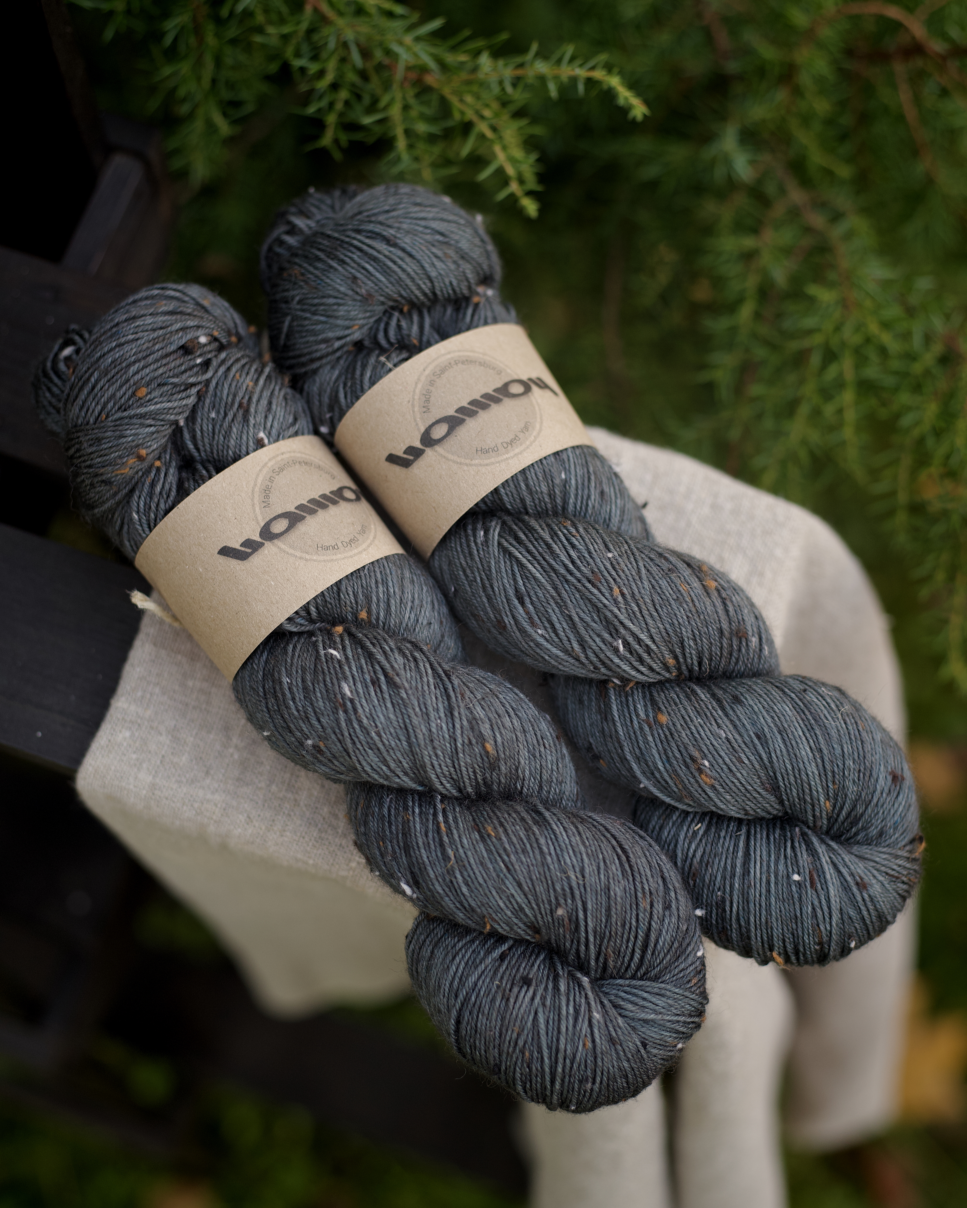 Пряжа ручного окрашивания на основе мериноса с нейлоном и ворсинками твида. Это носочная пряжа - из нее можно связать носки или другие чулочные изделия. Однако подойдет также для вязания шалей, перчаток, свитеров, шапок и бактусов. Одной пасмы хватит на пару взрослых носков или две пары перчаток. На плечевое изделие нужно от трех пасм, на шаль - две пасмы.