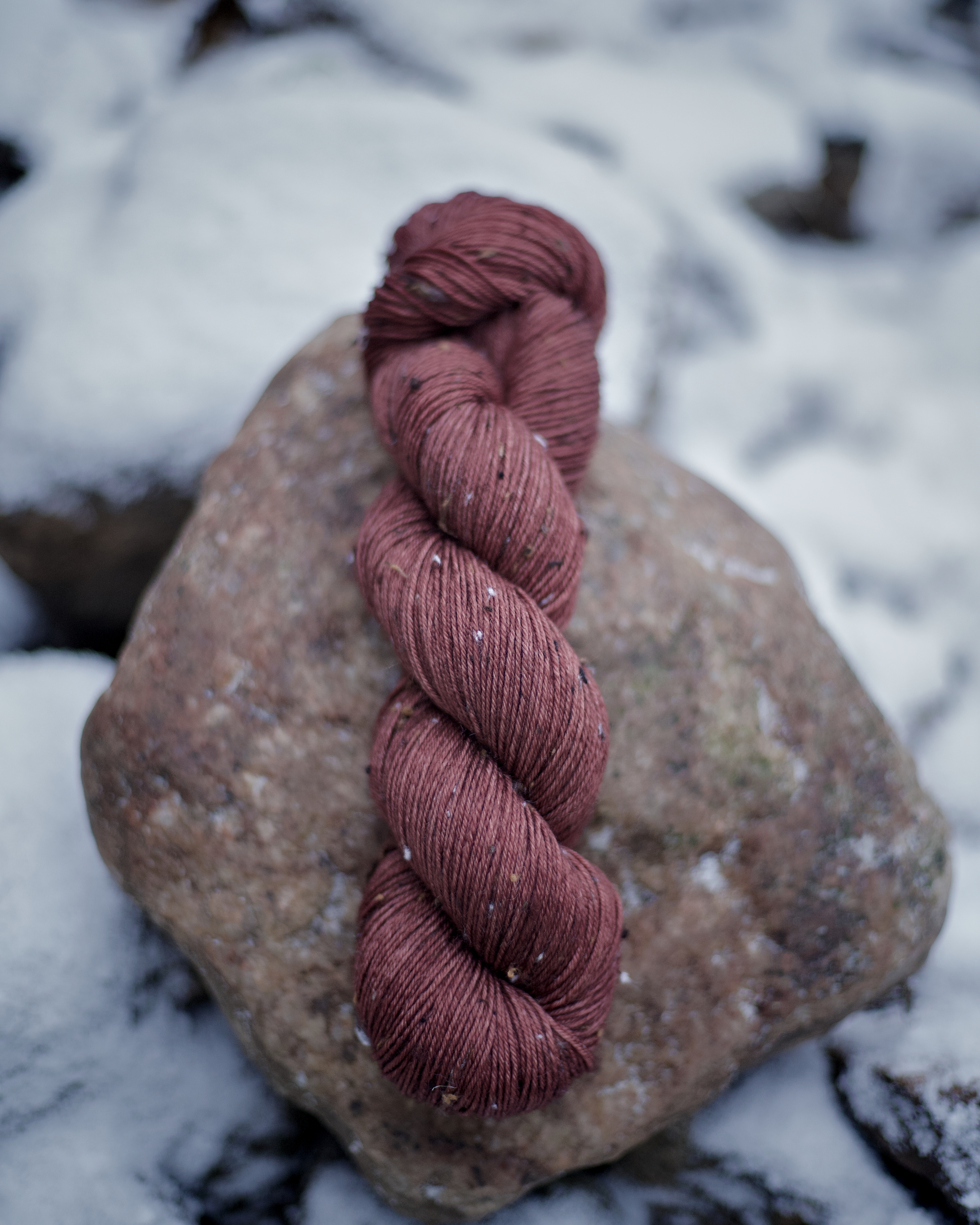 Пряжа ручного окрашивания на основе мериноса с нейлоном и ворсинками твида. Это носочная пряжа - из нее можно связать носки или другие чулочные изделия. Однако подойдет также для вязания шалей, перчаток, свитеров, шапок и бактусов. Одной пасмы хватит на пару взрослых носков или две пары перчаток. На плечевое изделие нужно от трех пасм, на шаль - две пасмы.