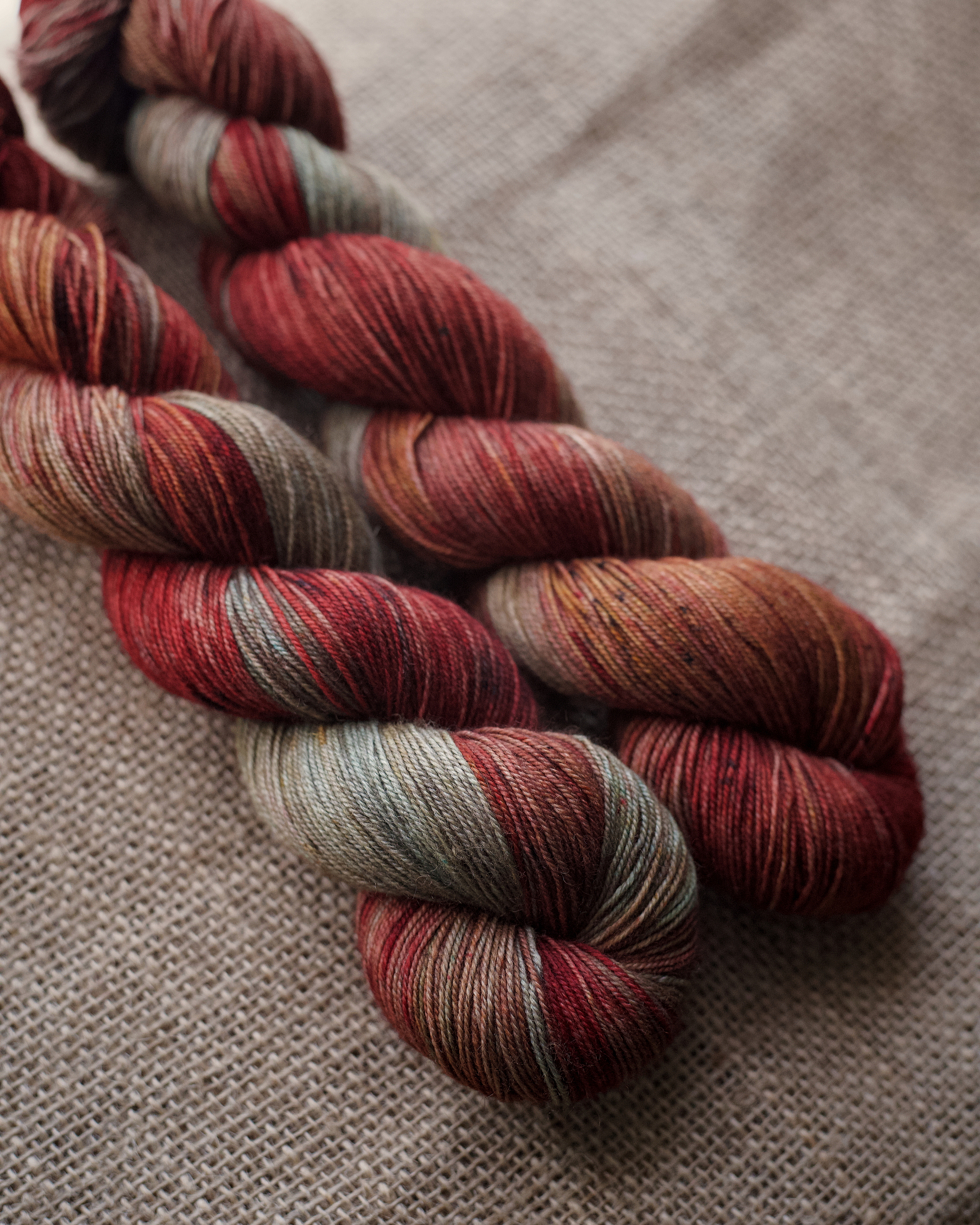 Носочная пряжа с пухом яка из коллекции "Тибетский календарь". Пасмы весом 100 г. Пряжа очень мягкая и приятная на ощупь, полотно из нее получается с меланжевым эффектом за счёт яка, который прокрашивается неоднородно. Вязать из пряжи - огромное удовольствие, носятся изделия прекрасно.